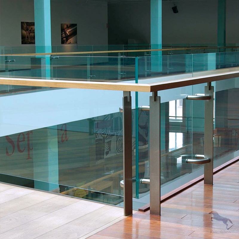 1. Balustrada de vidrio sin marco: proporciona una vista clara y una apariencia moderna sin estructuras o marcos de soporte visible. Los paneles de vidrio generalmente se aseguran con abrazaderas de metal o sistemas de soporte.