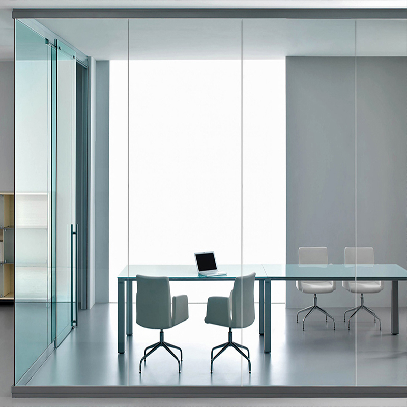 Particiones de vidrio de una sola capa: use un solo panel de vidrio para dividir espacios, ofreciendo transparencia y una sensación abierta.
