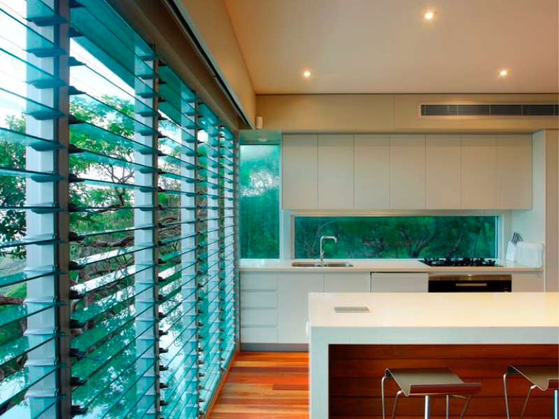 Regulación de la luz: los listones de vidrio ajustables en las rejillas también permiten el control sobre la penetración de la luz natural. Al incluir las listones, la cantidad deseada de luz solar se puede permitir en un espacio, reduciendo el resplandor y la ganancia de calor. Esta característica ayuda a crear un entorno cómodo y bien iluminado al tiempo que minimiza la necesidad de iluminación artificial.