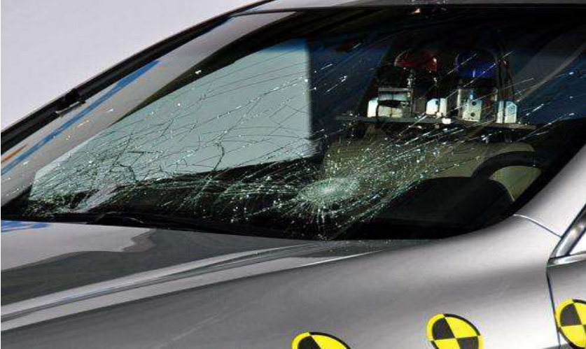 Esta es una imagen del parabrisas roto del automóvil. Debido a las películas pegadas, incluso si el vidrio está roto, nadie se lastimará.